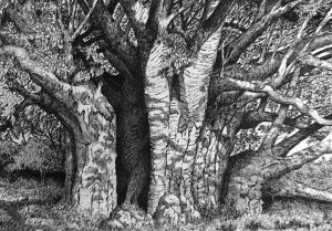 Diese Symbole verknüpft Jaime Colán mit den realen Tragödien der Menschen und der Natur. Demgegenüber leuchtet Hoffnung auf in den Zeichnungen der Bäume, die in ihrem Innern einen Schutzraum für die Menschen bilden. Es ist dies die Darstellung einer vitalen Beziehung, in der Mensch und Natur sich gegenseitig brauchen.