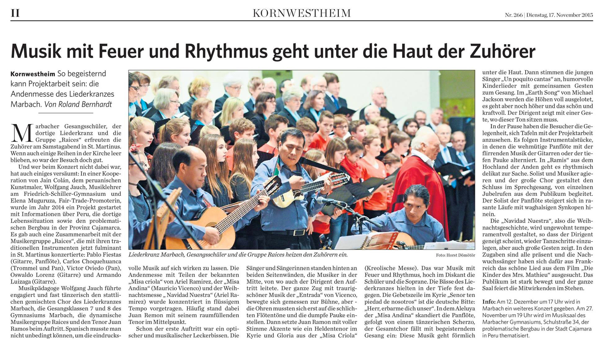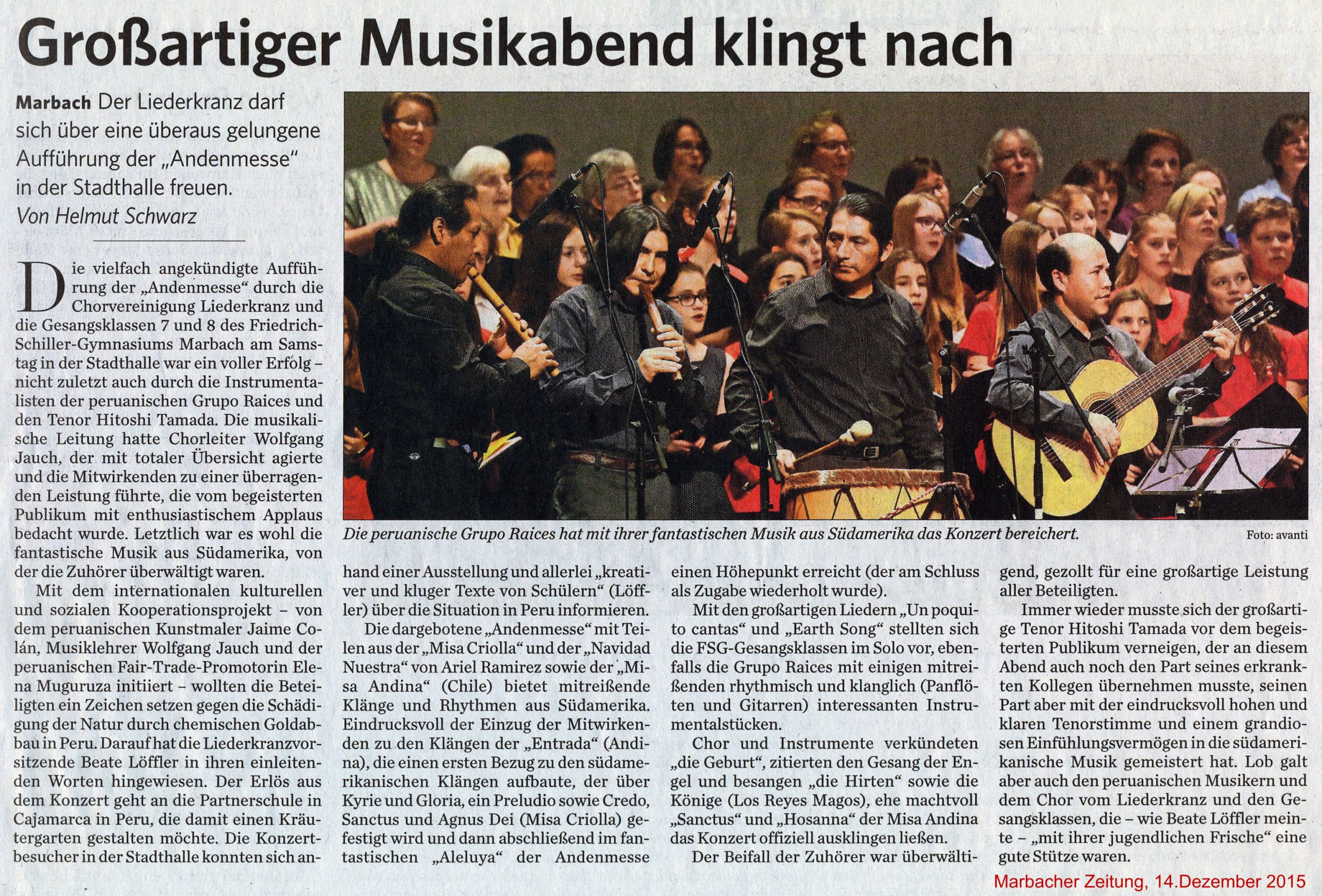 Dort wollen wir über eine Videoschaltung zwischen Cajamarca und dem Schwabenländle die Schüler der beiden Partnerschulen zusammenbringen und auch nochmals einen musikalischen Akzent setzen.